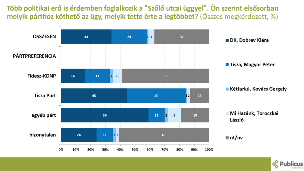 A válaszadók harmada (34 százalék) szerint ha a Fidesz elveszíti a következő választásokat, az új kormány munkáját nagy mértékben fogja gátolni az, hogy a Fidesz által megválasztott köztársasági elnök a hivatalában marad. Így gondolja a Tisza Párt szavazóinak az 56 százaléka, a bizonytalan szavazók 24 százaléka, illetve a Fidesz szavazók 11 százaléka.