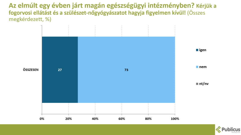 Tízből hét válaszadó az elmúlt egy évben járt állami, tízből három megkérdezett pedig járt magán egészségügyi intézményben saját egészségügyi problémája miatt.