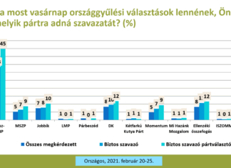 A Publicus Intézet a Népszava megbízásából február 20 – 25. között 1001 fő megkérdezésével készített országos reprezentatív közvéleménykutatásban vizsgálta a pártok támogatottságát.