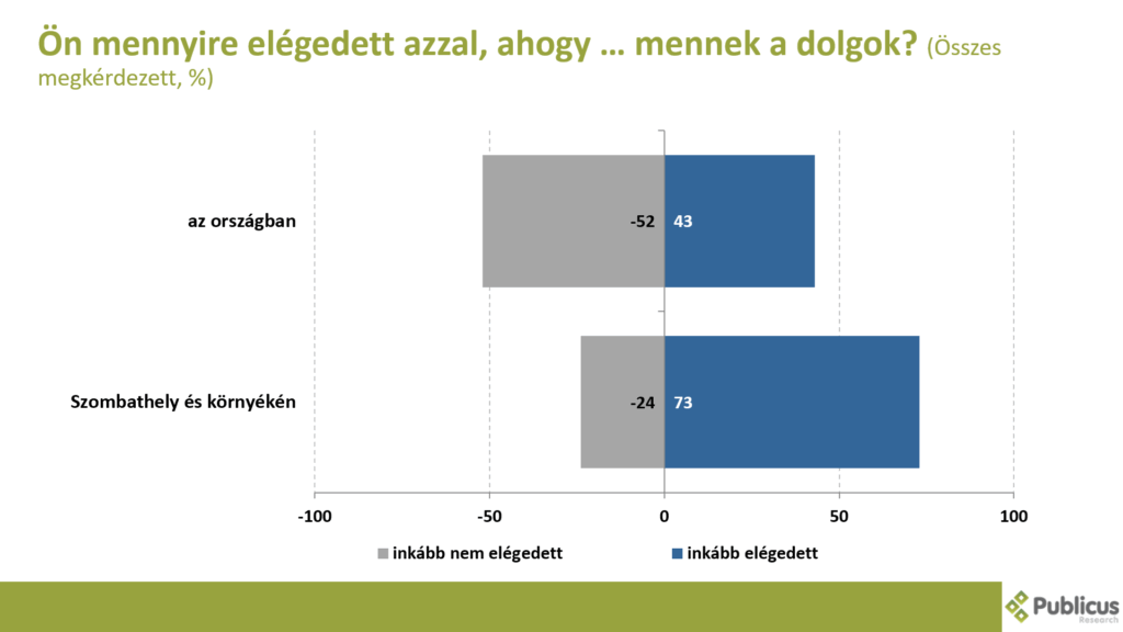 Vas vármegyei 1-es választókerületben élők sokkal elégedettebbek azzal, ahogy a lakóhelyükön mennek a dolgok, mint országos szinten. (helyben 73 százalék inkább elégedett, országos szinten pedig 43 százalék)