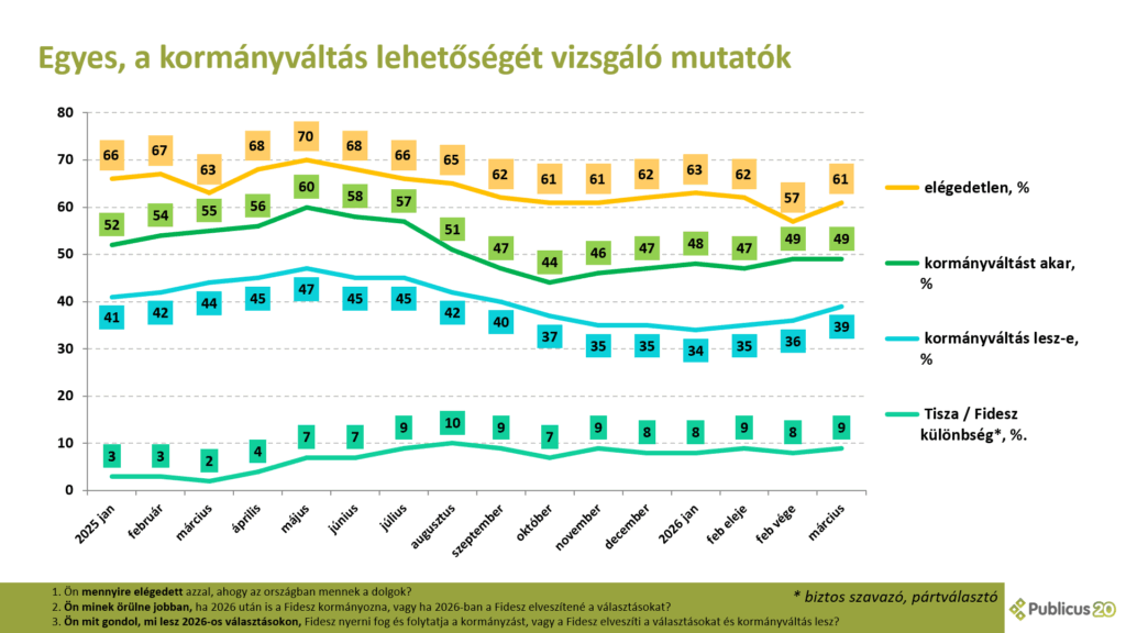 This single percentage point difference is actually a sign of a massive mental dam breaking. Belief in a victory is a key indicator. Since we began measuring this indicator in January 2025, this is the first time a relative majority believes in the possibility of a change of government. Furthermore, this happened as Fidesz voters became increasingly uncertain, while the confidence of Tisza voters built slowly but steadily. This is critical because an undecided but dissatisfied voter does not like to vote for a loser; they only move when they see the reality of change.